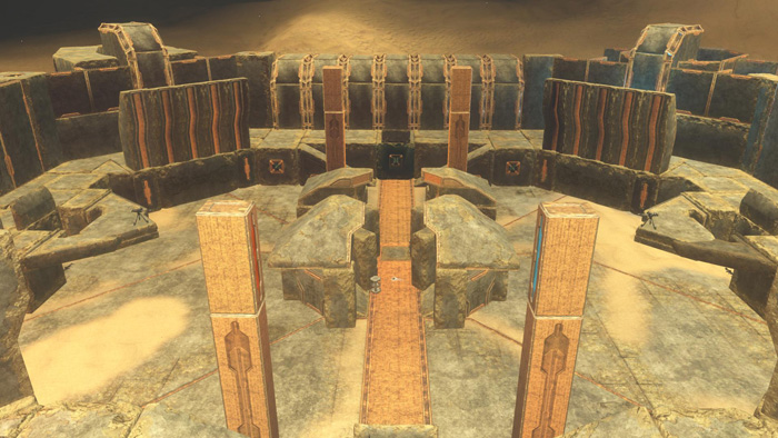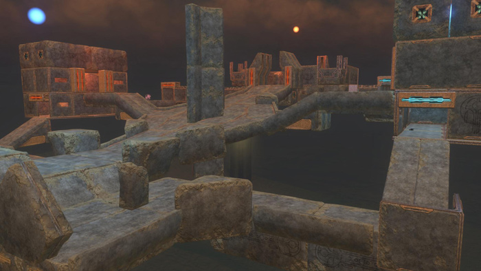 Excavation requires the least explanation of the trio of maps we're going to show off today. An extremely faithful recreation of Halo 2's Foundation, the only differences we can see appear to be due to the art palette available on Sandbox, and some small changes to the weapon and equipment layout. Want to learn more? Scroll for a brief interview with Excavation's creator, OctoDeath. Q. Since we already know the concept behind Excavation, talk about how you went about the recreation process. Were you running Halo 2's Multiplayer and Halo 3's Forge in some kind of PIP setup? A. I knew that if I was to remake the map, it would have to be very faithful to the map we all know and love. Unfortunately, I didn't use anything as technical as PIP, rather I fired up Halo 2, had a wander around the map, and then put pen to paper. I sketched out all aspects of the map, right down to weapon placement. Then from studying the bird's eye view using the game viewer on Bungie.net, I was able to estimate the necessary measurements. Using the blue grid on Sandbox I was able to translate the diagrams into double blocks, walls, and tube ramps! The forging process went relatively smoothly, a lot of the time I felt that Sandbox was just willing me on. The item palette is so much more versatile than anything we got to play with on Foundry. That said, I did start to run into problems with budget towards the end, but being resourceful, I managed to get the four rooms, and the high walls in place in the end. Q. Looks like you've slapped in some equipment. Do you think that will have a dramatic effect on how the map is played? A. I decided to place two Regenerators and two Bubble Shields as a way to counter the seemingly endless barrage of grenades that fly through both Excavation and Foundation. In playtests I enjoyed how they can gave pinned down players a little bit of breathing space. Also due to how open the middle of the map is, I thought it would be more beneficial for a traversing player to have the option of throwing down a bubble, rather than a player on the outside raining down Power Drainers on them. So I guess, yes, they do have an effect on how the map gets played, but definitely a positive one. If you don't like them though, you've got the option of deleting them! Q. Have you submitted this sucker to Atlas for review? A. Not yet, but I am planning to. Is Shishka interested in remakes? I have ran the gauntlet before with Octoplex and made the cut, although to mixed feedback. But that hasn't put me off though, something tells me players would be a little more receptive to Excavation. Atlas is a great idea of Shishka's, and I'd say to anyone who thinks they've got a Matchmaking worthy map to get it submitted, but read the stickies first! As long as the remakes don't infringe on another company's intellectual property, we're interested. Pivotal