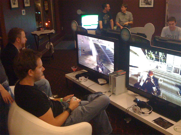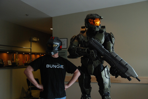 Bungie Weekly Update: 07/24/09Posted by urk at 7/24/2009 4:12 PM PDTA fanatical orgy of super nerds descended upon San Diego this week to get their clammy hooks on all manner of geeky, cross-genre goodness. Our boys Brian and Bertone have been busy wading through the body odor to offer up free samples of Halo 3: ODST Firefight (and mopping down each gaming station's controller with industrial strength antibacterial wipes). Good times. Though Brian's absence from the community corner of the studio means I'm left to man the fort all by my lonesome, he hasn't gone completely dark. Surrounded on all sides by a teeming mass of pimpled manflesh for sixteen hours on Thursday, and armed only with his fancy pants magic phone and his hotel room's blazing fast broadband connection, Brian did his best to sum up the experience with a handful of snaps and a small pile of words. "Yesterday we enjoyed a quaint afternoon with upwards of 100,000 other people who all descended upon the San Diego Convention Center for the annual Comic-con. Paul Bertone and I brought ODST along and offered fans a chance to get some hands-on time with Firefight inside the Xbox booth. Apparently, judging by the constant lines and crowds, a lot of people like Halo. Who knew? Throughout the day we had ten minute games going on Crater and Security Zone (both maps initially revealed at E3 earlier this year) and the mob never dipped below a one hour wait. The Con itself had record crowds and venturing anywhere outside the safe zone of the booth was a risky proposition. Wading through the crowd just to get a drink easily became a thirty minute commitment, minimum. Thankfully we had some friendly support staff who were able to maintain our perimeter as seven people at a time trickled in to get up close and personal with our new cooperative game mode. Lucky (or perhaps unlucky?) fans got a chance to climb up onto the stage and play alongside Paul (and later with Bungie artist Tom Doyle) and get a small prize. Naturally much trash was talked but nobody was able to live up to their claims of beating Paul at his own game. Overall it was a fun, if short lived, experience and we got to meet a ton of great fans along the way. Sadly, in barely the time that elapses in-game from the Rookie's crashing into New Mombasa and then waking to emerge from his drop pod, our time at the Con was over. Later in the evening we setup shop again across the street at a mixer event hosted by Xbox and the cast of the LIVE show, "The Guild." For many more hours we hosted four firefight stations for media and fans alike amidst a nice offering of other upcoming Xbox titles and free drinks. Thanks to everyone who stopped by to say hi and show their support. I only wish it could've lasted longer. Hopefully we'll see more of you at Penny Arcade Expo later this Summer. For now, I'll leave you with an assortment of photos from yesterday's events (taken on a phone for extra gritty realism)." ![]() Ensconced ![]() Nobody puts Baby in a corner! ![]() The long and winding Firefight road. ![]() Head to Head ![]() Oh, the humanity! ![]() Prepare to Cosplay ![]() Herding Nerds ![]() Chiefbombed ![]() Doyle: BFF ![]() VIP Loungin' ![]() Bungie Street Boys (and Friends) ![]() Halo Legend ![]() The VIP room gets bigger, better, and more badass. Halo in RetrospectOn Tuesday we commemorated the original announcement of a little game we like to call Monkeynuts. You might know it a bit better as Halo. If you want to turn back the clock and relive the halcyon days of yore, slip into your favorite pair of Capris and scope out the archival footage of Jason Jones unveiling what was 1999's New Hawtness. We've got the decade old unveiling all up in our YouTube channel. And for all the jerks calling us out in the comments section for being "name wasters" even though we've already linked to that space before for our sadly defunct B.U.N.G.L.E. Pro™ project, yeah that's our channel. Now who are the ones who are the wasters? Huh? It's you. That's right, you are the waster. Where was I? The Macworld 1999 footage obviously isn't exactly new, as you may have noticed by the fact that it's footage from Macworld 1999, but since the handful of copies we could dig up online were all low resolution affairs loaded with unappealing artifacts—all smudgy, blocky, and gross—we figured some IQ improvements were in order for this small snippet of studio treasure. Our Visual Design team also crafted a ten year encapsulation of Halo's past and present that we hear brought delicious tears to many a fan's eye. You should give it a watch as well. You'll laugh, you'll cry, you'll see Marty in a wig and dress. Originally aired on a ginormous theater screen in front of a live studio audience as part of our own internal Bungie Day festivities, we figured it would be a real shame if this slice of studio history went unshared with our Seventh Column peeps. The streaming version already went live this past Tuesday, but if you've yet to get a good look at it we've also prepped a spiffy 720p version for your viewing pleasure. Both flavors linked below. Right-click and Save As, please. Halo, Ten Years - WMV 720P Version [341MB] Halo, Ten Years - WMV 360P Version [56 MB] We've said it before and we'll say it again, thanks for playing. And please stop sobbing. It's getting embarrassing. You Know the MusicWhere the Hell is Matt? Turns out he's right here. Well, he was. Wonder if he bailed because I was all up in his mug telling him to bust a move? Dance, monkey! For the uninitiated, Matt's the Darwinian Tubercle rockin' former game developin' dude who travels the world comically undulating in front of his camera. His global gyrations have proved to be so entertaining that he's now operating his own well-traveled website and renting out space for millions on YouTube. He's a pretty popular dude. As Pete Parsons put it, "Matt has more fans than we do." It's true. His videos have something like eleven-centillion views. He's