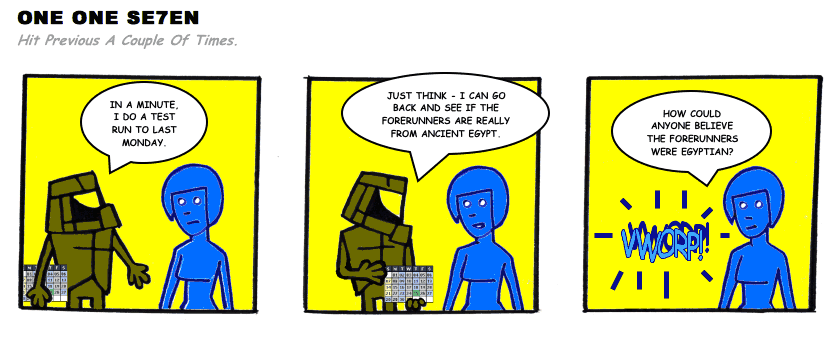 On April 30, 2003, Stuntmutt began turning in episodes of a new comic known as One One Se7en. We'll present them here, in the order in which they were submitted, as they come in. New submissions were added Monday, Wednesday, and Friday. On March 3, 2008, One One Se7en was retired from regular releases - Stunt's life got a tad too busy for 3 strips per week. (He still comes by with new content when the situation arises, however.)