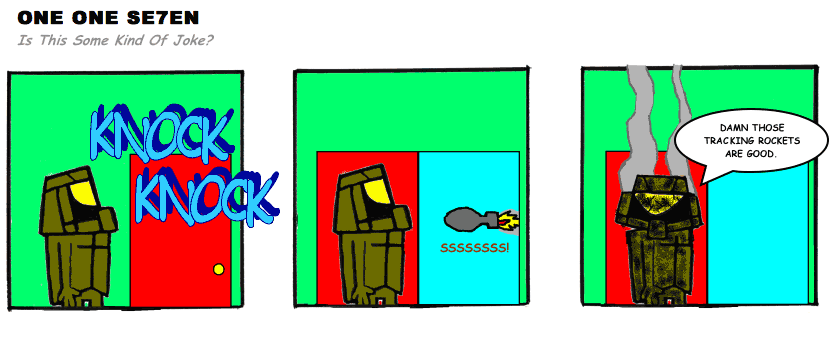 On April 30, 2003, Stuntmutt began turning in episodes of a new comic known as One One Se7en. We'll present them here, in the order in which they were submitted, as they come in. New submissions were added Monday, Wednesday, and Friday. On March 3, 2008, One One Se7en was retired from regular releases - Stunt's life got a tad too busy for 3 strips per week. (He still comes by with new content when the situation arises, however.)