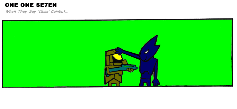 On April 30, 2003, Stuntmutt began turning in episodes of a new comic known as One One Se7en. We'll present them here, in the order in which they were submitted, as they come in. New submissions were added Monday, Wednesday, and Friday. On March 3, 2008, One One Se7en was retired from regular releases - Stunt's life got a tad too busy for 3 strips per week. (He still comes by with new content when the situation arises, however.)