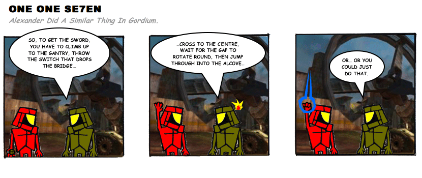 On April 30, 2003, Stuntmutt began turning in episodes of a new comic known as One One Se7en. We'll present them here, in the order in which they were submitted, as they come in. New submissions were added Monday, Wednesday, and Friday. On March 3, 2008, One One Se7en was retired from regular releases - Stunt's life got a tad too busy for 3 strips per week. (He still comes by with new content when the situation arises, however.)