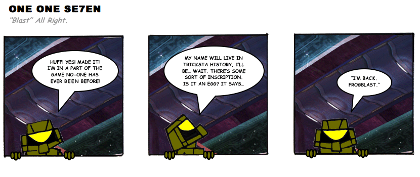On April 30, 2003, Stuntmutt began turning in episodes of a new comic known as One One Se7en. We'll present them here, in the order in which they were submitted, as they come in. New submissions were added Monday, Wednesday, and Friday. On March 3, 2008, One One Se7en was retired from regular releases - Stunt's life got a tad too busy for 3 strips per week. (He still comes by with new content when the situation arises, however.)
