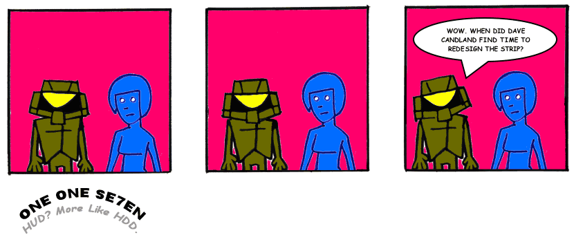 On April 30, 2003, Stuntmutt began turning in episodes of a new comic known as One One Se7en. We'll present them here, in the order in which they were submitted, as they come in. New submissions were added Monday, Wednesday, and Friday. On March 3, 2008, One One Se7en was retired from regular releases - Stunt's life got a tad too busy for 3 strips per week. (He still comes by with new content when the situation arises, however.)