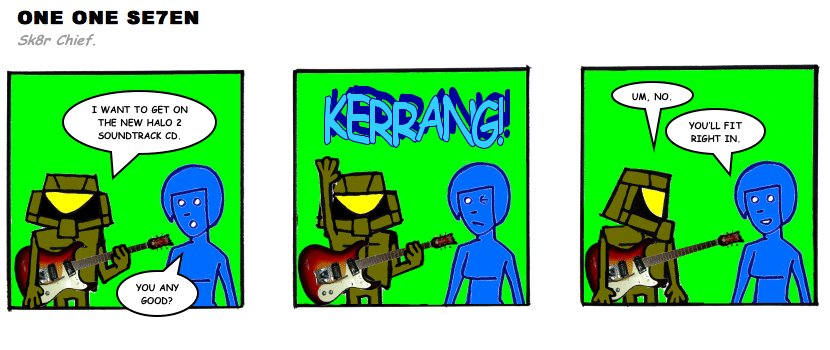 On April 30, 2003, Stuntmutt began turning in episodes of a new comic known as One One Se7en. We'll present them here, in the order in which they were submitted, as they come in. New submissions were added Monday, Wednesday, and Friday. On March 3, 2008, One One Se7en was retired from regular releases - Stunt's life got a tad too busy for 3 strips per week. (He still comes by with new content when the situation arises, however.)