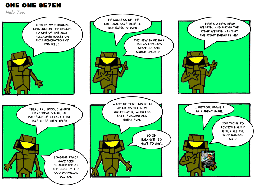 On April 30, 2003, Stuntmutt began turning in episodes of a new comic known as One One Se7en. We'll present them here, in the order in which they were submitted, as they come in. New submissions were added Monday, Wednesday, and Friday. On March 3, 2008, One One Se7en was retired from regular releases - Stunt's life got a tad too busy for 3 strips per week. (He still comes by with new content when the situation arises, however.)