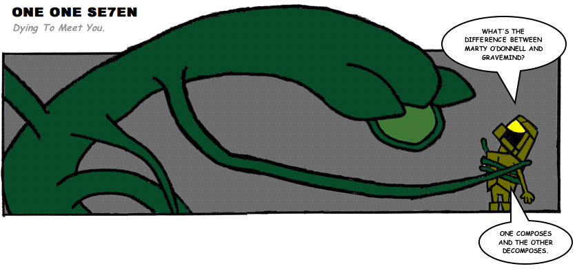 On April 30, 2003, Stuntmutt began turning in episodes of a new comic known as One One Se7en. We'll present them here, in the order in which they were submitted, as they come in. New submissions were added Monday, Wednesday, and Friday. On March 3, 2008, One One Se7en was retired from regular releases - Stunt's life got a tad too busy for 3 strips per week. (He still comes by with new content when the situation arises, however.)