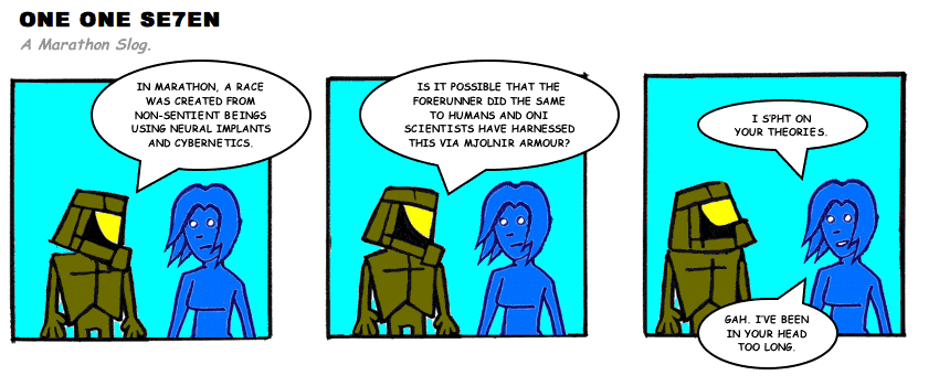 On April 30, 2003, Stuntmutt began turning in episodes of a new comic known as One One Se7en. We'll present them here, in the order in which they were submitted, as they come in. New submissions were added Monday, Wednesday, and Friday. On March 3, 2008, One One Se7en was retired from regular releases - Stunt's life got a tad too busy for 3 strips per week. (He still comes by with new content when the situation arises, however.)