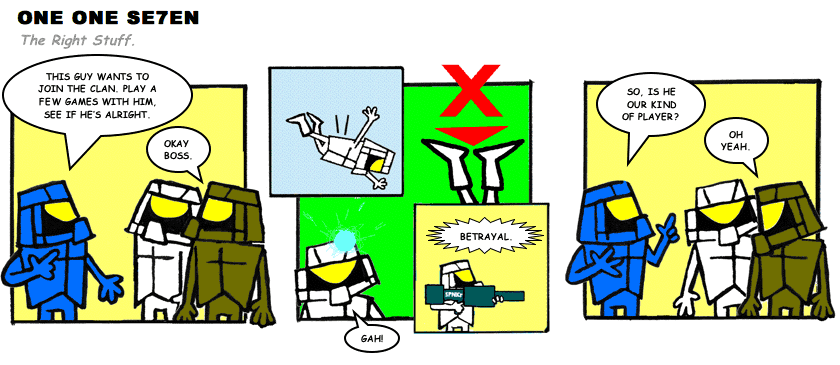 On April 30, 2003, Stuntmutt began turning in episodes of a new comic known as One One Se7en. We'll present them here, in the order in which they were submitted, as they come in. New submissions were added Monday, Wednesday, and Friday. On March 3, 2008, One One Se7en was retired from regular releases - Stunt's life got a tad too busy for 3 strips per week. (He still comes by with new content when the situation arises, however.)