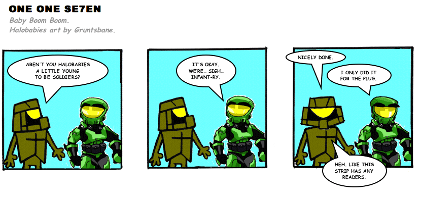 On April 30, 2003, Stuntmutt began turning in episodes of a new comic known as One One Se7en. We'll present them here, in the order in which they were submitted, as they come in. New submissions were added Monday, Wednesday, and Friday. On March 3, 2008, One One Se7en was retired from regular releases - Stunt's life got a tad too busy for 3 strips per week. (He still comes by with new content when the situation arises, however.)