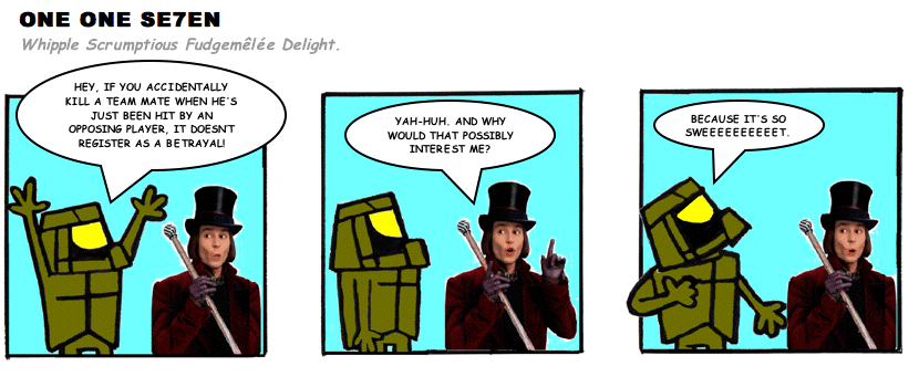On April 30, 2003, Stuntmutt began turning in episodes of a new comic known as One One Se7en. We'll present them here, in the order in which they were submitted, as they come in. New submissions were added Monday, Wednesday, and Friday. On March 3, 2008, One One Se7en was retired from regular releases - Stunt's life got a tad too busy for 3 strips per week. (He still comes by with new content when the situation arises, however.)