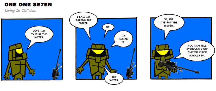 On April 30, 2003, Stuntmutt began turning in episodes of a new comic known as One One Se7en. We'll present them here, in the order in which they were submitted, as they come in. New submissions were added Monday, Wednesday, and Friday. On March 3, 2008, One One Se7en was retired from regular releases - Stunt's life got a tad too busy for 3 strips per week. (He still comes by with new content when the situation arises, however.)