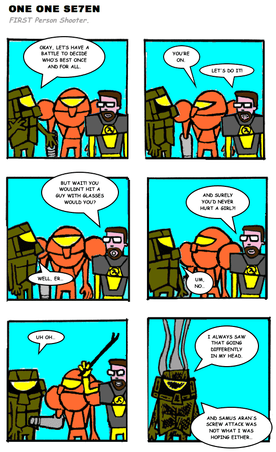 On April 30, 2003, Stuntmutt began turning in episodes of a new comic known as One One Se7en. We'll present them here, in the order in which they were submitted, as they come in. New submissions were added Monday, Wednesday, and Friday. On March 3, 2008, One One Se7en was retired from regular releases - Stunt's life got a tad too busy for 3 strips per week. (He still comes by with new content when the situation arises, however.)