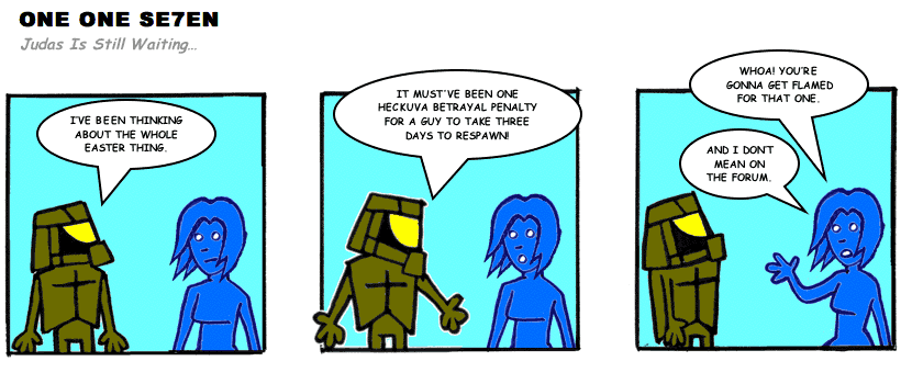 On April 30, 2003, Stuntmutt began turning in episodes of a new comic known as One One Se7en. We'll present them here, in the order in which they were submitted, as they come in. New submissions were added Monday, Wednesday, and Friday. On March 3, 2008, One One Se7en was retired from regular releases - Stunt's life got a tad too busy for 3 strips per week. (He still comes by with new content when the situation arises, however.)