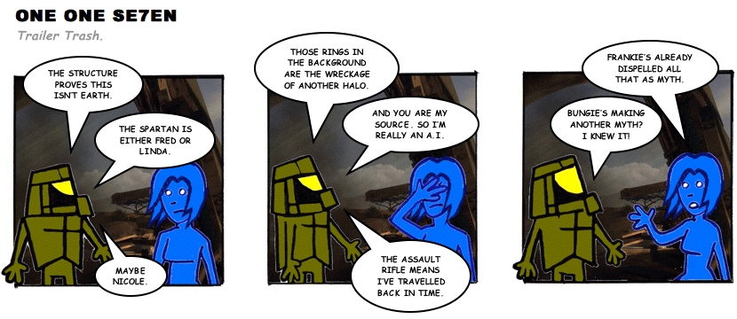 On April 30, 2003, Stuntmutt began turning in episodes of a new comic known as One One Se7en. We'll present them here, in the order in which they were submitted, as they come in. New submissions were added Monday, Wednesday, and Friday. On March 3, 2008, One One Se7en was retired from regular releases - Stunt's life got a tad too busy for 3 strips per week. (He still comes by with new content when the situation arises, however.)
