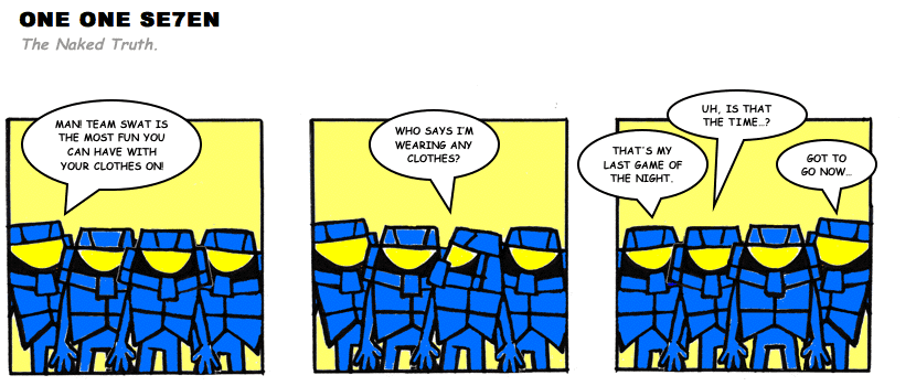 On April 30, 2003, Stuntmutt began turning in episodes of a new comic known as One One Se7en. We'll present them here, in the order in which they were submitted, as they come in. New submissions were added Monday, Wednesday, and Friday. On March 3, 2008, One One Se7en was retired from regular releases - Stunt's life got a tad too busy for 3 strips per week. (He still comes by with new content when the situation arises, however.)