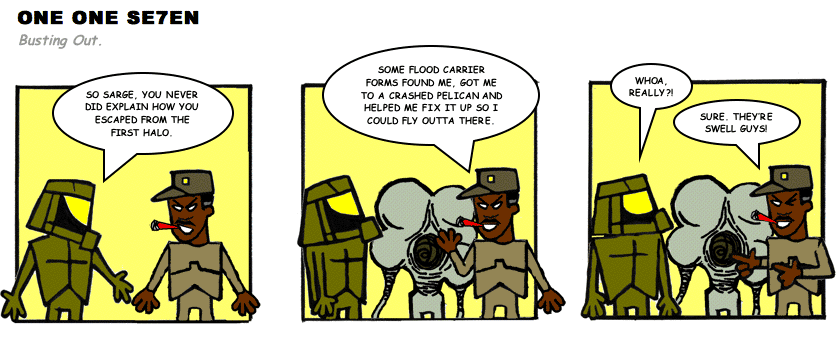 On April 30, 2003, Stuntmutt began turning in episodes of a new comic known as One One Se7en. We'll present them here, in the order in which they were submitted, as they come in. New submissions were added Monday, Wednesday, and Friday. On March 3, 2008, One One Se7en was retired from regular releases - Stunt's life got a tad too busy for 3 strips per week. (He still comes by with new content when the situation arises, however.)