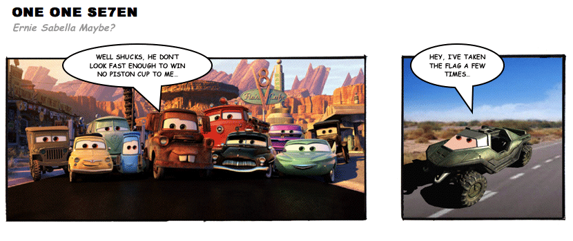 On April 30, 2003, Stuntmutt began turning in episodes of a new comic known as One One Se7en. We'll present them here, in the order in which they were submitted, as they come in. New submissions were added Monday, Wednesday, and Friday. On March 3, 2008, One One Se7en was retired from regular releases - Stunt's life got a tad too busy for 3 strips per week. (He still comes by with new content when the situation arises, however.)