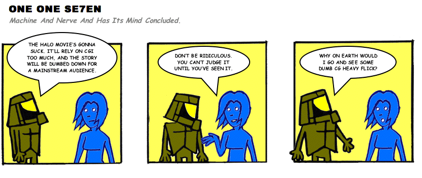 On April 30, 2003, Stuntmutt began turning in episodes of a new comic known as One One Se7en. We'll present them here, in the order in which they were submitted, as they come in. New submissions were added Monday, Wednesday, and Friday. On March 3, 2008, One One Se7en was retired from regular releases - Stunt's life got a tad too busy for 3 strips per week. (He still comes by with new content when the situation arises, however.)