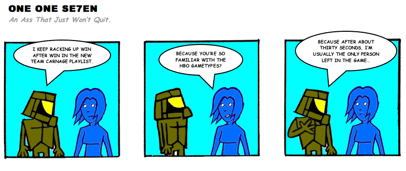 On April 30, 2003, Stuntmutt began turning in episodes of a new comic known as One One Se7en. We'll present them here, in the order in which they were submitted, as they come in. New submissions were added Monday, Wednesday, and Friday. On March 3, 2008, One One Se7en was retired from regular releases - Stunt's life got a tad too busy for 3 strips per week. (He still comes by with new content when the situation arises, however.)