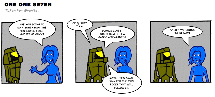 On April 30, 2003, Stuntmutt began turning in episodes of a new comic known as One One Se7en. We'll present them here, in the order in which they were submitted, as they come in. New submissions were added Monday, Wednesday, and Friday. On March 3, 2008, One One Se7en was retired from regular releases - Stunt's life got a tad too busy for 3 strips per week. (He still comes by with new content when the situation arises, however.)