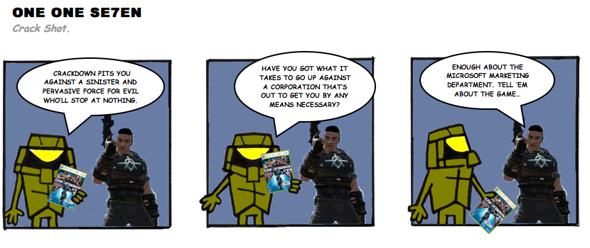 On April 30, 2003, Stuntmutt began turning in episodes of a new comic known as One One Se7en. We'll present them here, in the order in which they were submitted, as they come in. New submissions were added Monday, Wednesday, and Friday. On March 3, 2008, One One Se7en was retired from regular releases - Stunt's life got a tad too busy for 3 strips per week. (He still comes by with new content when the situation arises, however.)