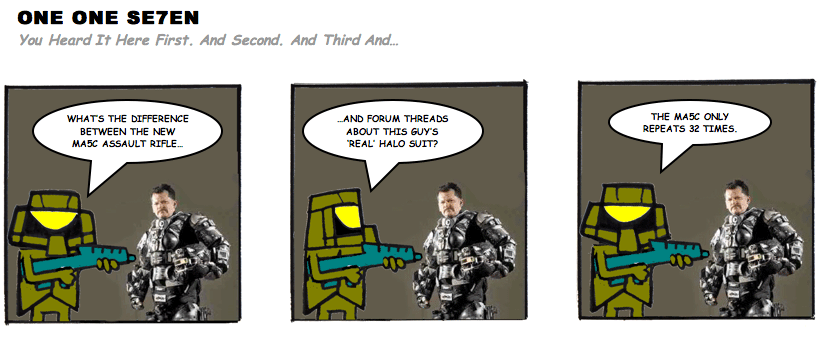 On April 30, 2003, Stuntmutt began turning in episodes of a new comic known as One One Se7en. We'll present them here, in the order in which they were submitted, as they come in. New submissions were added Monday, Wednesday, and Friday. On March 3, 2008, One One Se7en was retired from regular releases - Stunt's life got a tad too busy for 3 strips per week. (He still comes by with new content when the situation arises, however.)