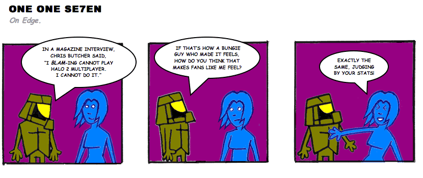 On April 30, 2003, Stuntmutt began turning in episodes of a new comic known as One One Se7en. We'll present them here, in the order in which they were submitted, as they come in. New submissions were added Monday, Wednesday, and Friday. On March 3, 2008, One One Se7en was retired from regular releases - Stunt's life got a tad too busy for 3 strips per week. (He still comes by with new content when the situation arises, however.)