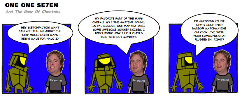 On April 30, 2003, Stuntmutt began turning in episodes of a new comic known as One One Se7en. We'll present them here, in the order in which they were submitted, as they come in. New submissions were added Monday, Wednesday, and Friday. On March 3, 2008, One One Se7en was retired from regular releases - Stunt's life got a tad too busy for 3 strips per week. (He still comes by with new content when the situation arises, however.)