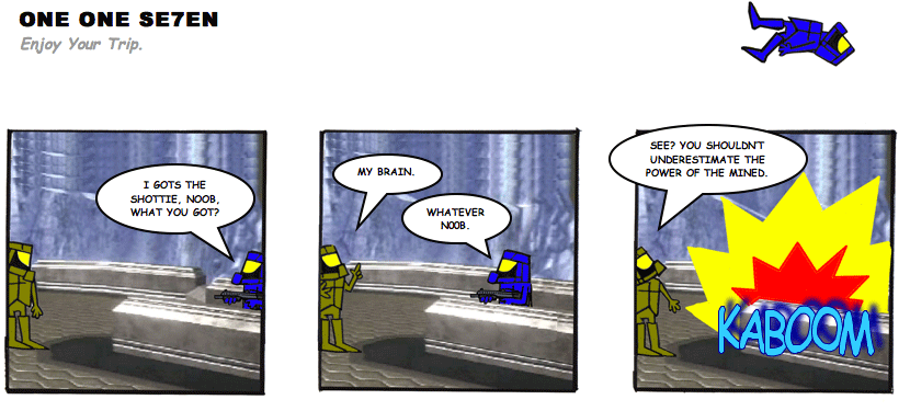 On April 30, 2003, Stuntmutt began turning in episodes of a new comic known as One One Se7en. We'll present them here, in the order in which they were submitted, as they come in. New submissions were added Monday, Wednesday, and Friday. On March 3, 2008, One One Se7en was retired from regular releases - Stunt's life got a tad too busy for 3 strips per week. (He still comes by with new content when the situation arises, however.)