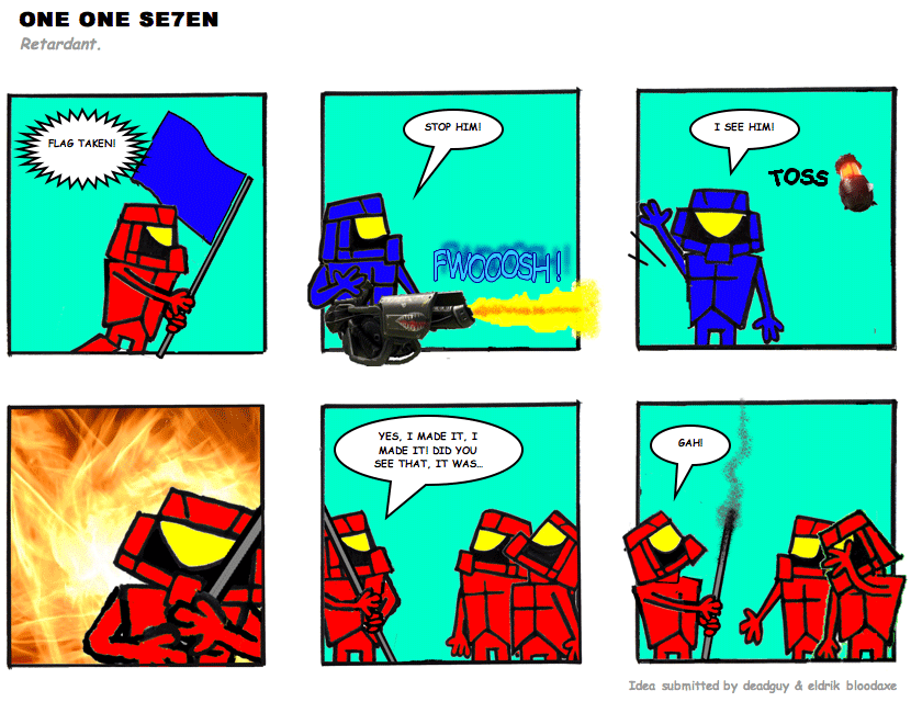 On April 30, 2003, Stuntmutt began turning in episodes of a new comic known as One One Se7en. We'll present them here, in the order in which they were submitted, as they come in. New submissions were added Monday, Wednesday, and Friday. On March 3, 2008, One One Se7en was retired from regular releases - Stunt's life got a tad too busy for 3 strips per week. (He still comes by with new content when the situation arises, however.)