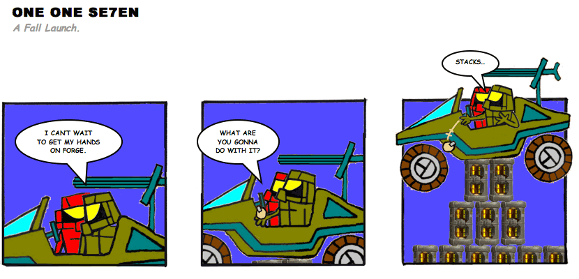 On April 30, 2003, Stuntmutt began turning in episodes of a new comic known as One One Se7en. We'll present them here, in the order in which they were submitted, as they come in. New submissions were added Monday, Wednesday, and Friday. On March 3, 2008, One One Se7en was retired from regular releases - Stunt's life got a tad too busy for 3 strips per week. (He still comes by with new content when the situation arises, however.)