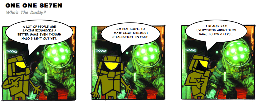 On April 30, 2003, Stuntmutt began turning in episodes of a new comic known as One One Se7en. We'll present them here, in the order in which they were submitted, as they come in. New submissions were added Monday, Wednesday, and Friday. On March 3, 2008, One One Se7en was retired from regular releases - Stunt's life got a tad too busy for 3 strips per week. (He still comes by with new content when the situation arises, however.)