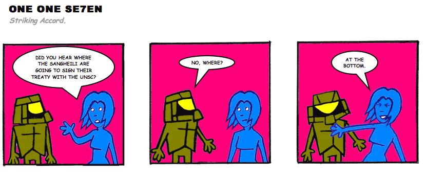 On April 30, 2003, Stuntmutt began turning in episodes of a new comic known as One One Se7en. We'll present them here, in the order in which they were submitted, as they come in. New submissions were added Monday, Wednesday, and Friday. On March 3, 2008, One One Se7en was retired from regular releases - Stunt's life got a tad too busy for 3 strips per week. (He still comes by with new content when the situation arises, however.)