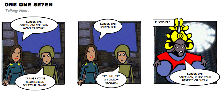 On April 30, 2003, Stuntmutt began turning in episodes of a new comic known as One One Se7en. We'll present them here, in the order in which they were submitted, as they come in. New submissions were added Monday, Wednesday, and Friday. On March 3, 2008, One One Se7en was retired from regular releases - Stunt's life got a tad too busy for 3 strips per week. (He still comes by with new content when the situation arises, however.)