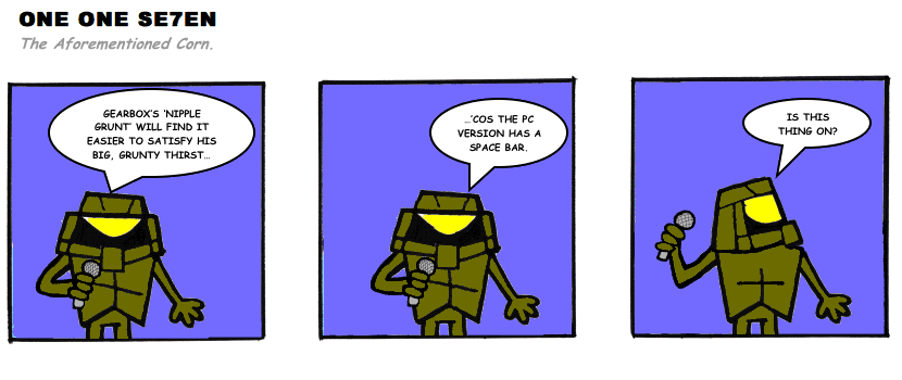 On April 30, 2003, Stuntmutt began turning in episodes of a new comic known as One One Se7en. We'll present them here, in the order in which they were submitted, as they come in. New submissions were added Monday, Wednesday, and Friday. On March 3, 2008, One One Se7en was retired from regular releases - Stunt's life got a tad too busy for 3 strips per week. (He still comes by with new content when the situation arises, however.)