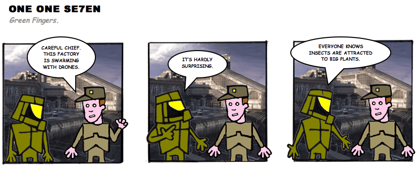 On April 30, 2003, Stuntmutt began turning in episodes of a new comic known as One One Se7en. We'll present them here, in the order in which they were submitted, as they come in. New submissions were added Monday, Wednesday, and Friday. On March 3, 2008, One One Se7en was retired from regular releases - Stunt's life got a tad too busy for 3 strips per week. (He still comes by with new content when the situation arises, however.)