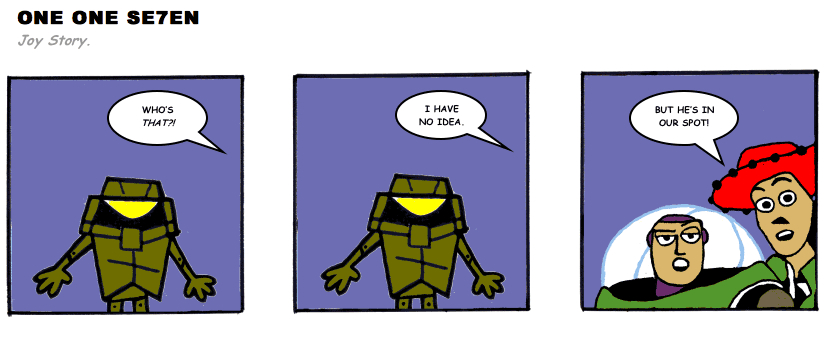 On April 30, 2003, Stuntmutt began turning in episodes of a new comic known as One One Se7en. We'll present them here, in the order in which they were submitted, as they come in. New submissions were added Monday, Wednesday, and Friday. On March 3, 2008, One One Se7en was retired from regular releases - Stunt's life got a tad too busy for 3 strips per week. (He still comes by with new content when the situation arises, however.)