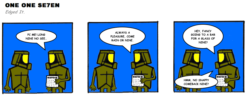 On April 30, 2003, Stuntmutt began turning in episodes of a new comic known as One One Se7en. We'll present them here, in the order in which they were submitted, as they come in. New submissions were added Monday, Wednesday, and Friday. On March 3, 2008, One One Se7en was retired from regular releases - Stunt's life got a tad too busy for 3 strips per week. (He still comes by with new content when the situation arises, however.)