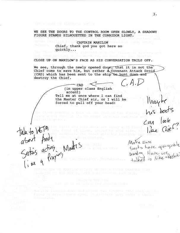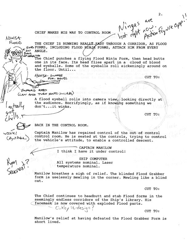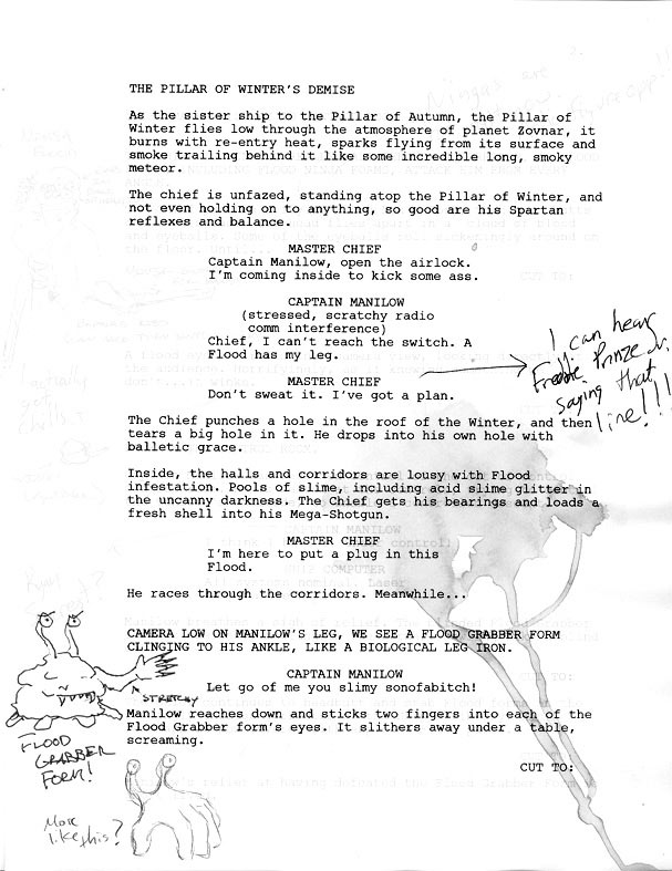 The Bungie Weekly Update LOTS more movie rumors and speculation this week. Best of all, some news, and even images from ONP (our next project). First off, the links to Flood on a Plane you sent us are obviously an April Fool's gag since it's already April 1st somewhere in the world, but it is a cute one. Hey, I'd pay to see that film. You know that Flood Combat Form behind Kenan is totally going to kick the back of his seat for the entire flight. On a more serious note, about 200 of you sent me scans early this week of an allegedly leaked Universal movie script asking us to comment. Well, we can't pretend not to have seen the script in question since it's been all over the internet for a week or two, but regular Bungie.net followers will know that it is our official policy to never comment on rumors and speculation. Until you hear an announcement from Bungie, any script leaks you see should be treated as rumor. We won't comment on this one at all I'm afraid, especially since we're sensitive to the needs of our partners, including Universal and Peter Jackson. In other news, Mat Noguchi has been promoted from tools manager to Bungie PR Ambassador. He took some time out to answer questions about this sensitive new role. What's your main set of responsibilities?