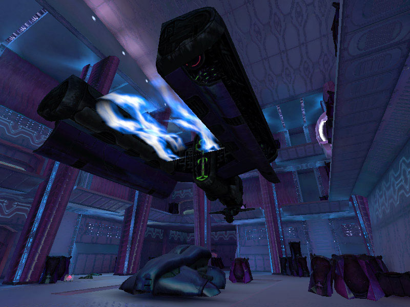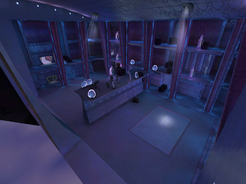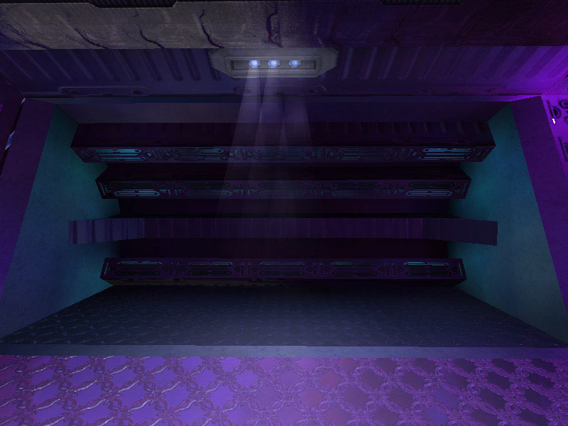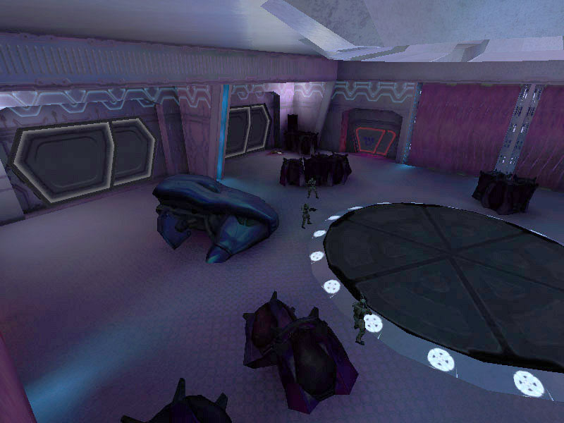 The first room on board the Truth and Reconciliation occupied by UNSC infiltrators, the gravity lift bay is similar to the cargo bays except they are only one level high. The gravity lift's materializer mechanism is situated in the center of the room, with cargo and personnel hatches located around the rectangular bay's walls. Several gravity lift bays are on board the cruisers, not far from the cargo and shuttle bays. Each grav lift bay has four cargo hatches along opposite walls for vehicle transfer.