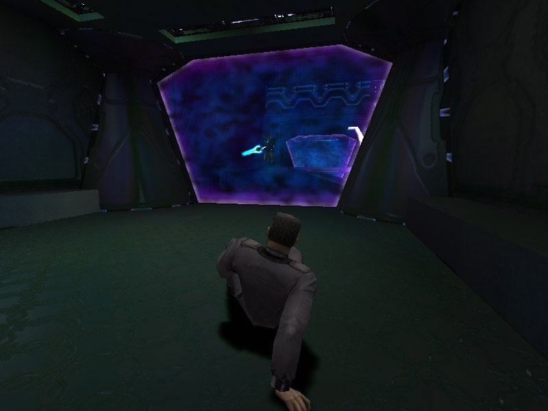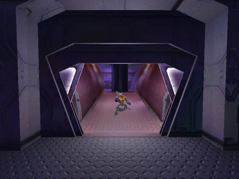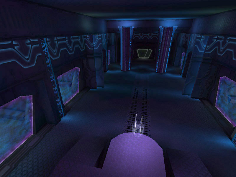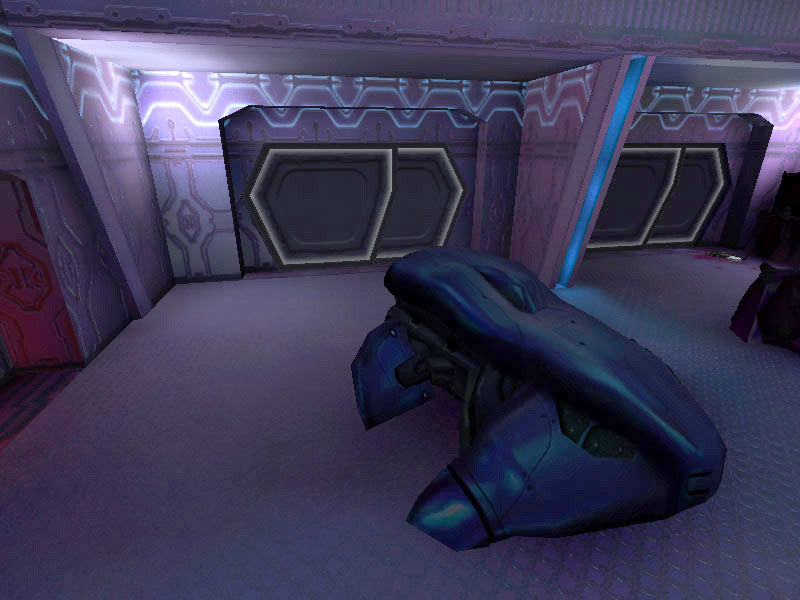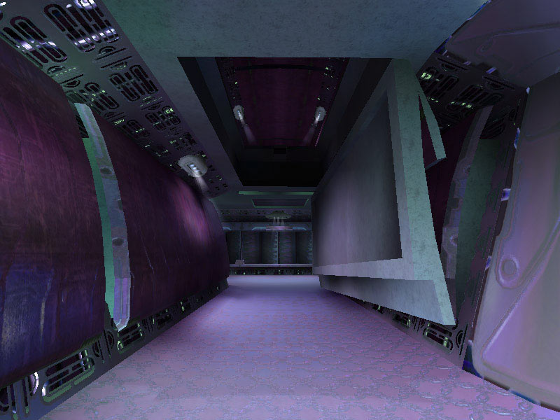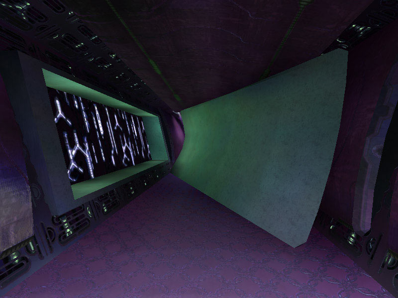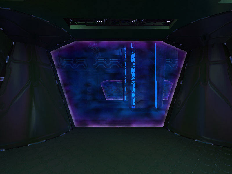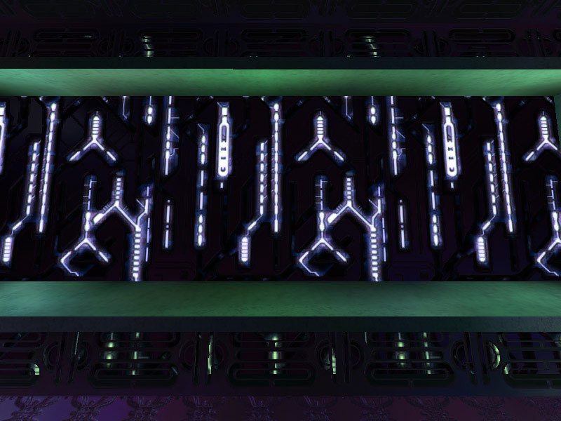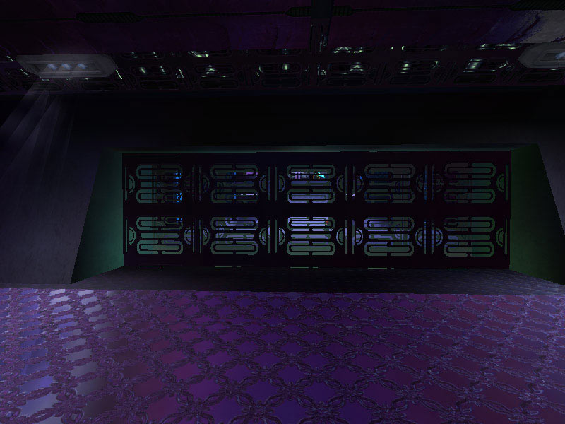 The panel in the Corridor Junction or what is arbitrarily labeled Panel Type #1 seems like it may be a weapons rack or equipment storage area. Panel #2 is access piping for ship's power. The panel labeled Type #3 is often encountered as a backing substrate of many of the corridors. It is a grating which saves on weight without compromising strength. Much of the ship's structure contains this alloy. Occasionally it is used as a barrier separating corridors from rooms such as the ship's Control Center, which is seen in the above image beyond the grating.