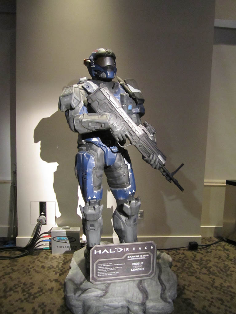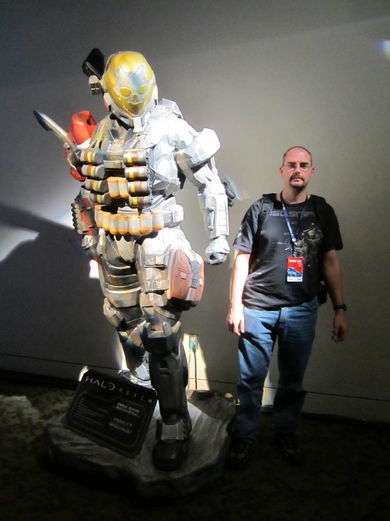 Next to the Warthog was a life-size statue of Noble Team's Emile. You're scary, you know that? Got a pic to illustrate how I would not win in a fight with him...even as an immovable statue. The Noble statues in the venue were life-size versions of the poses that make up the Legendary Reach statue that came with the game.