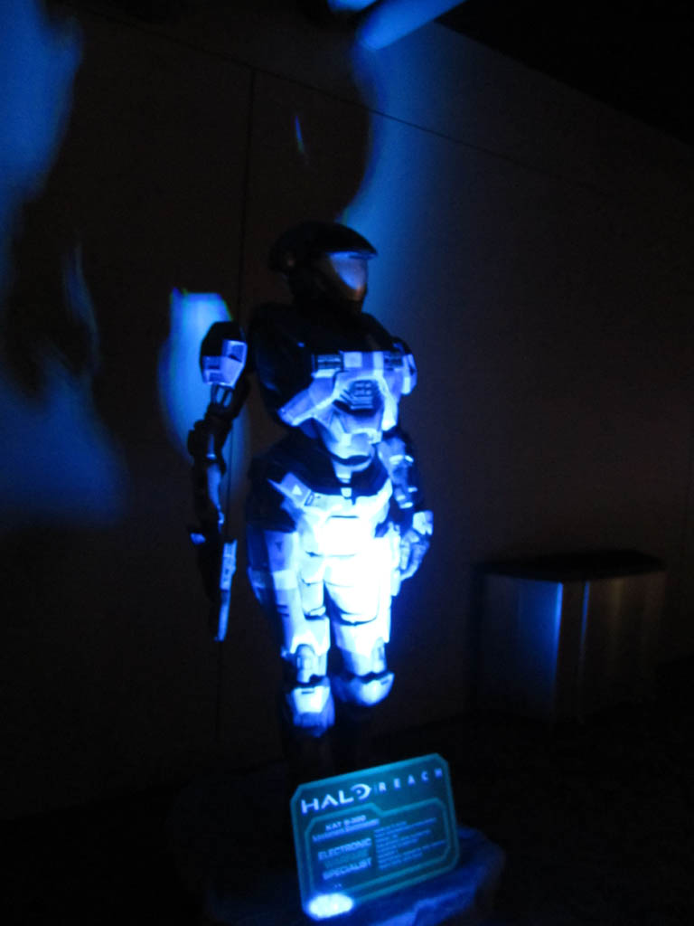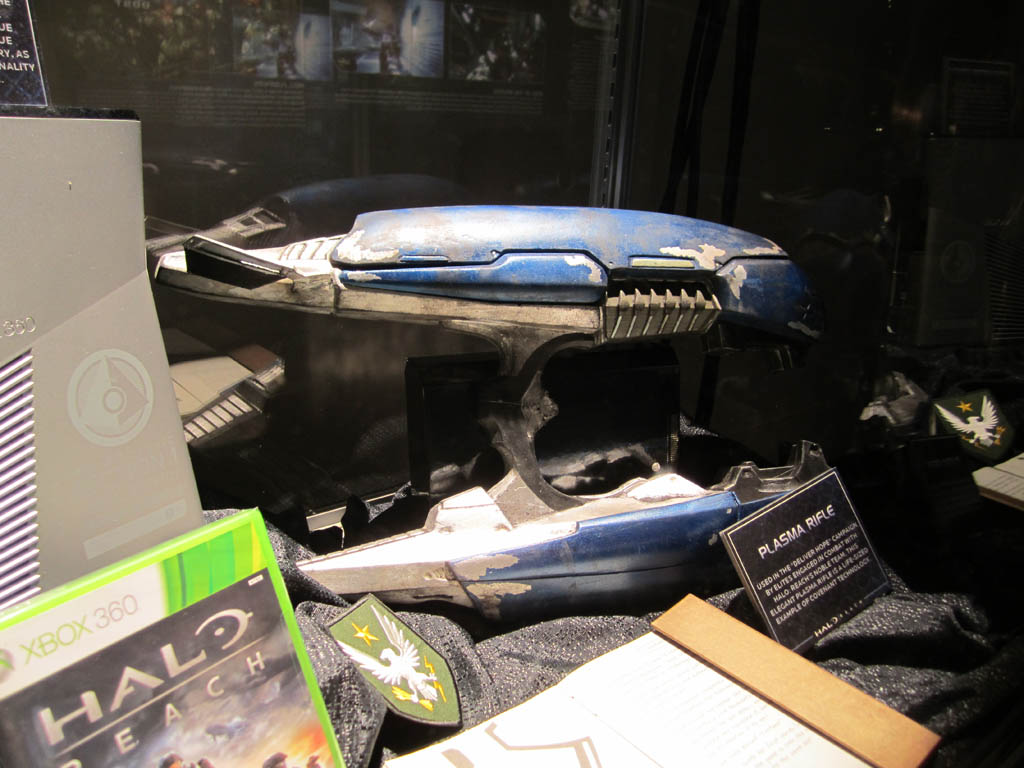 Also in the Halo History section were cabinets filled with Halo paraphernalia including some full sized weapon props.
