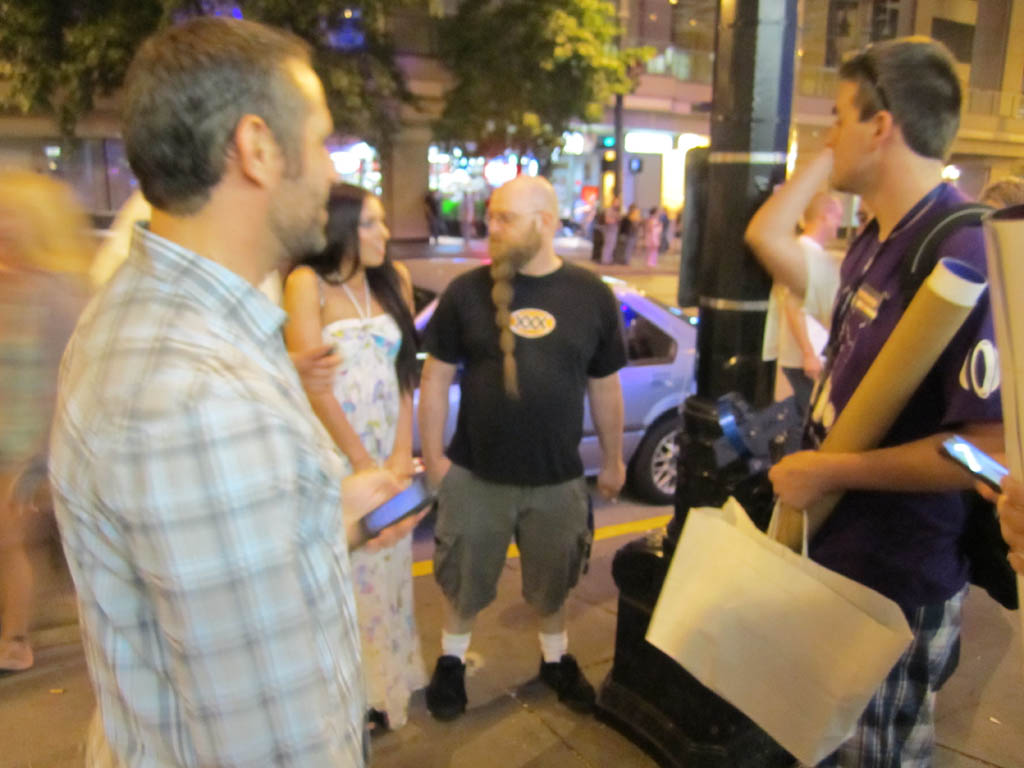 Into the evening, none of us wanted to leave, but it was closing time. We loitered out on the sidewalk because we weren't done partying. We saw Sage's Beard and I guess by extension, Sage Merrill, and another Bungie familiar to all of us on HBO, JonnyOThan (Jon Cable). A few more Bungie folks were seen leaving the premises and with that, we called it a night and turned in. Brandon the Lionhearted saw some pretty flashing colors that evening, but that's a story for him to tell if he wishes... :)
