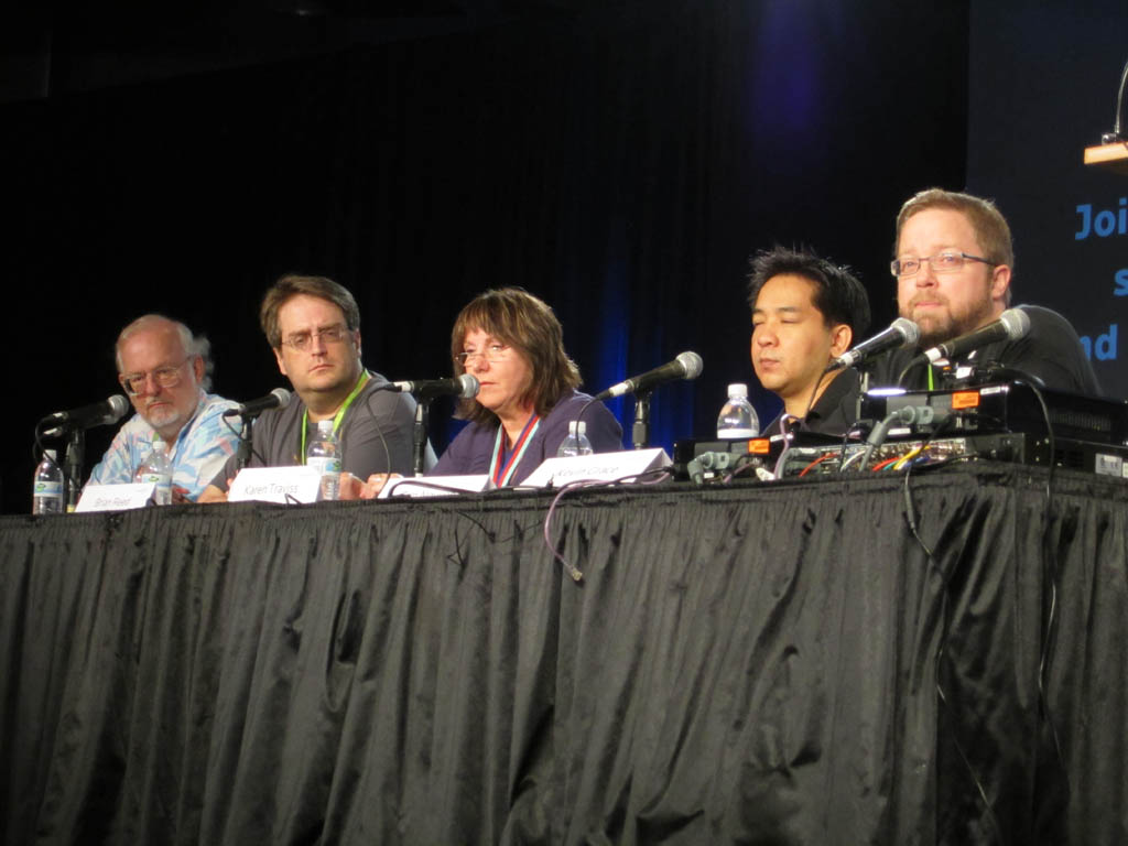 Right up afterward was the Halo Universe Fiction panel. The panelists included Cryptum's Greg Bear, new trilogy author Karen Traviss, 343i's Kevin Grace, and a Marvel comic artist and Marvel writer. Great panel and lots of cool talk of what's to come. I was called out by Kevin Grace (about 25 min. in) when he was talking about generating new fiction and the community's penchant for dissecting and analyzing that info. Sounds like some great new fiction is on the way though!