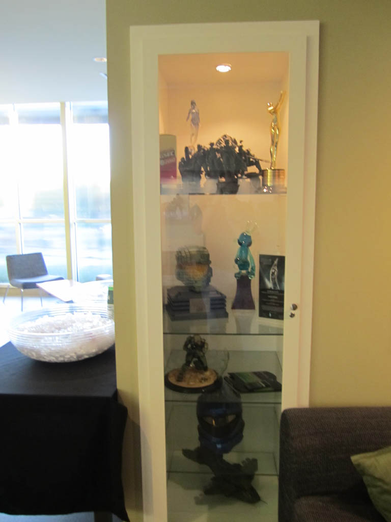 Next on the semi-self-guided tour was the infamous trophy wall. Some Weta sculptures and awards from Bungie's numerous and well-deserved accomplishments.