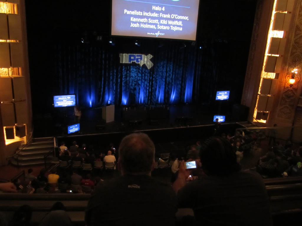 This opera house was enormous and the ceiling was impossibly far above us even from the balcony. An epic locale for an epic panel. Halo 4. Panelists include the main artist, sound guy, creative guy, the exec producer and our beloved Frankie. The panel is online but suffice it to say Halo 4's shaping up to be an epic-scope game! Got an additional video of the perils of new sound design. The Q&A section of the panel mostly involved the expected "No", "I don't know yet", and "We can't discuss it".