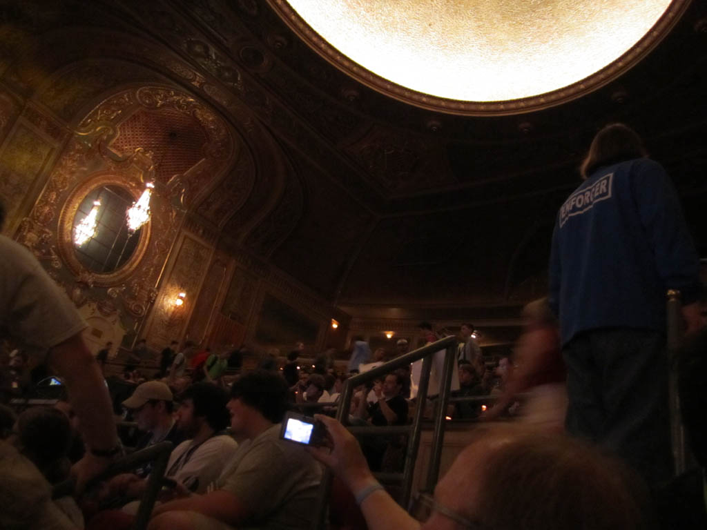 Time to go inside and get seated. The event staff had another treat for us! We were sent to another entrance with stairs and were told we'd occupy the front rows of the balcony! What!? Rock stars, man! We filed in and sat down. Someone noted that the seats were numbered and we were in the low hundred where we were. Everyone's first thought was to find number 117 of course. Turns out seat 117 was randomly occupied by Levi's muse, Maddie. A comedy of errors ensued as Mig tried to get Claude to see seat 117, the nameplate of which happened to be between Maddie's knees. Juvenile pranks aside, congrats, Maddie, for nabbing the seat we all would have loved to boast about and for not killing the lot of us for our brief reversion to grade school maturity!