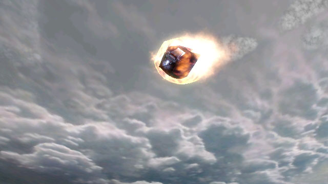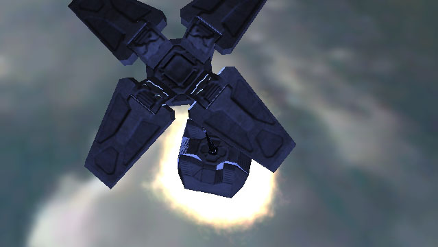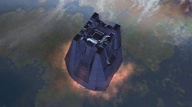 After the pod leaves the vicinity of its ship, it is in freefall towards a planet's surface. The bottom of the HEV is covered in an ablative ceramic skin, more protective than the ceramic skin around the remainder of the vehicle. The pod's crew compartment, during its burn through the atmosphere, can reach as high as 37°C (98°F); enough to be mildly uncomfortable to the already suited-up ODST. Part of the pod's deceleration is initially reliant on the inertial drag caused by the air of the planet. After the vehicle has slowed sufficiently, a braking chute is deployed on a strong tether a few meters above the pod. It's made of the same metals and ceramics as the rest of the pod. It's not meant to be a parachute to slow the vehicle significantly, but rather as a way of stabilizing the pod during its decent so the retro-thrusters can fire at the proper angle to slow the craft.